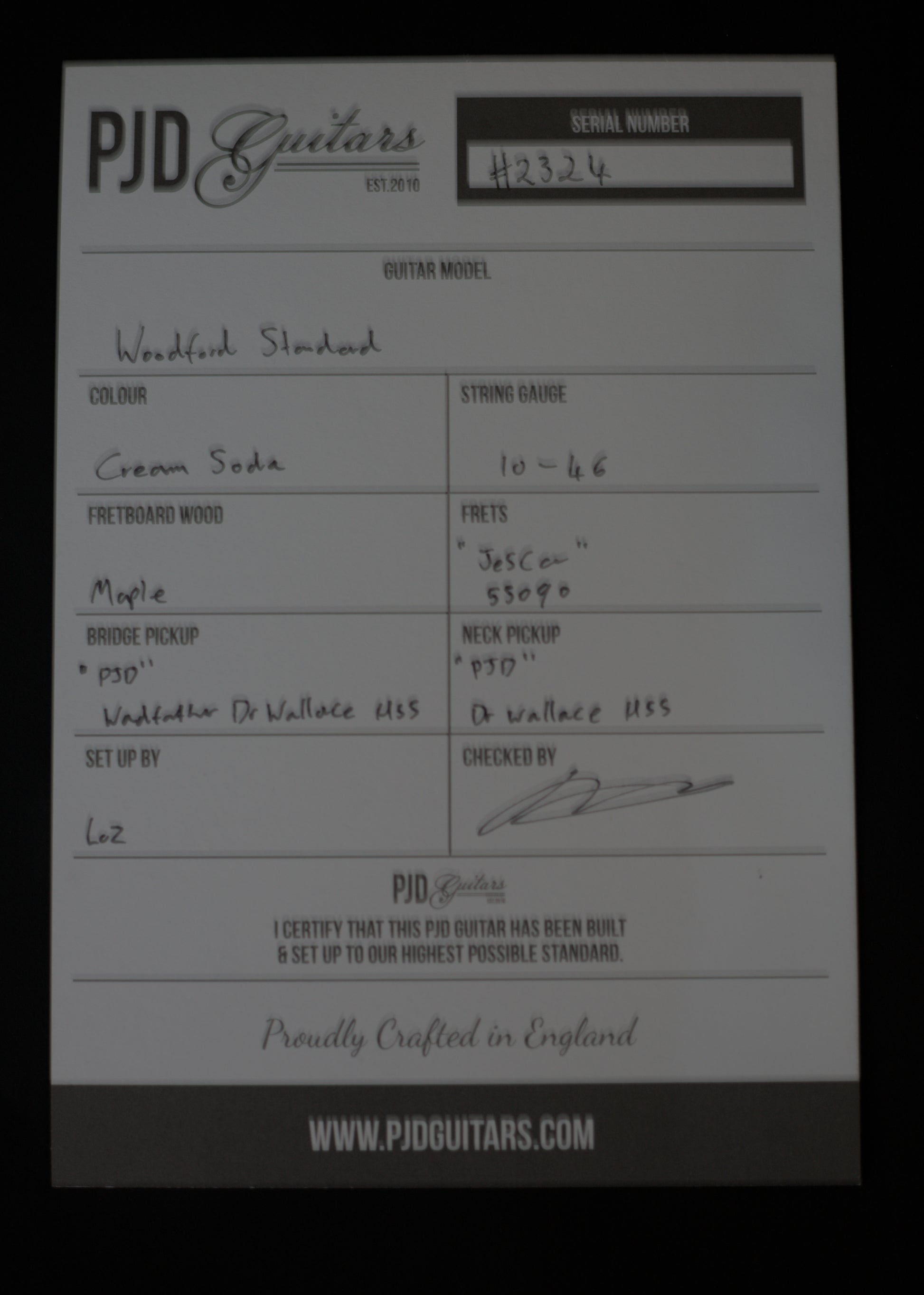 PJD Woodford Standard Custom Order 2024, Cream Soda with matching headstock
