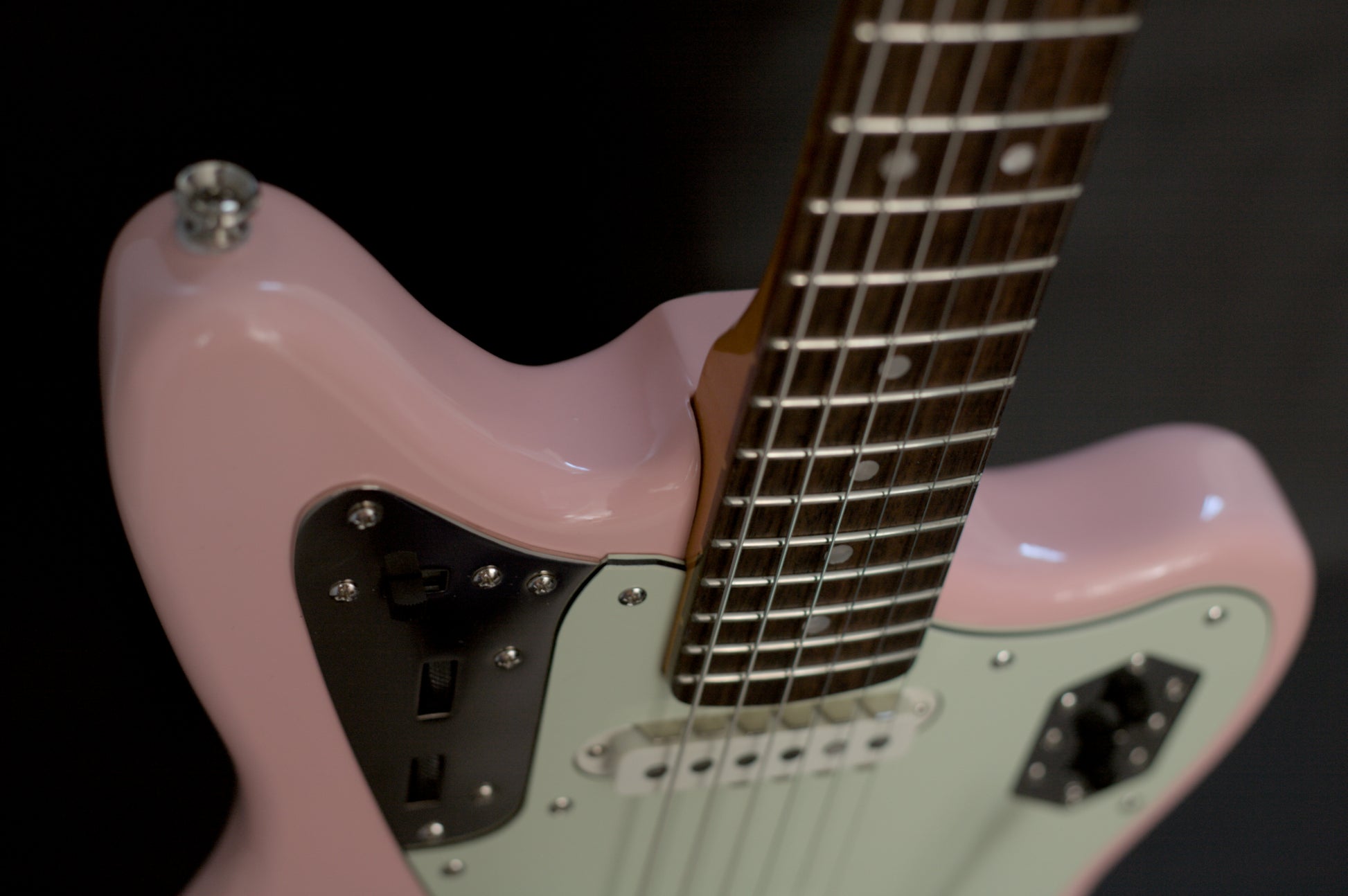 This Squier Classic Vibe '60s Jaguar is presented in a Limited Edition Shell Pink gloss finish, with a 3-ply Mint Green pickguard and body-matching headstock, which we love. This guitar has been produced as an FSR model, making availability highly limited.