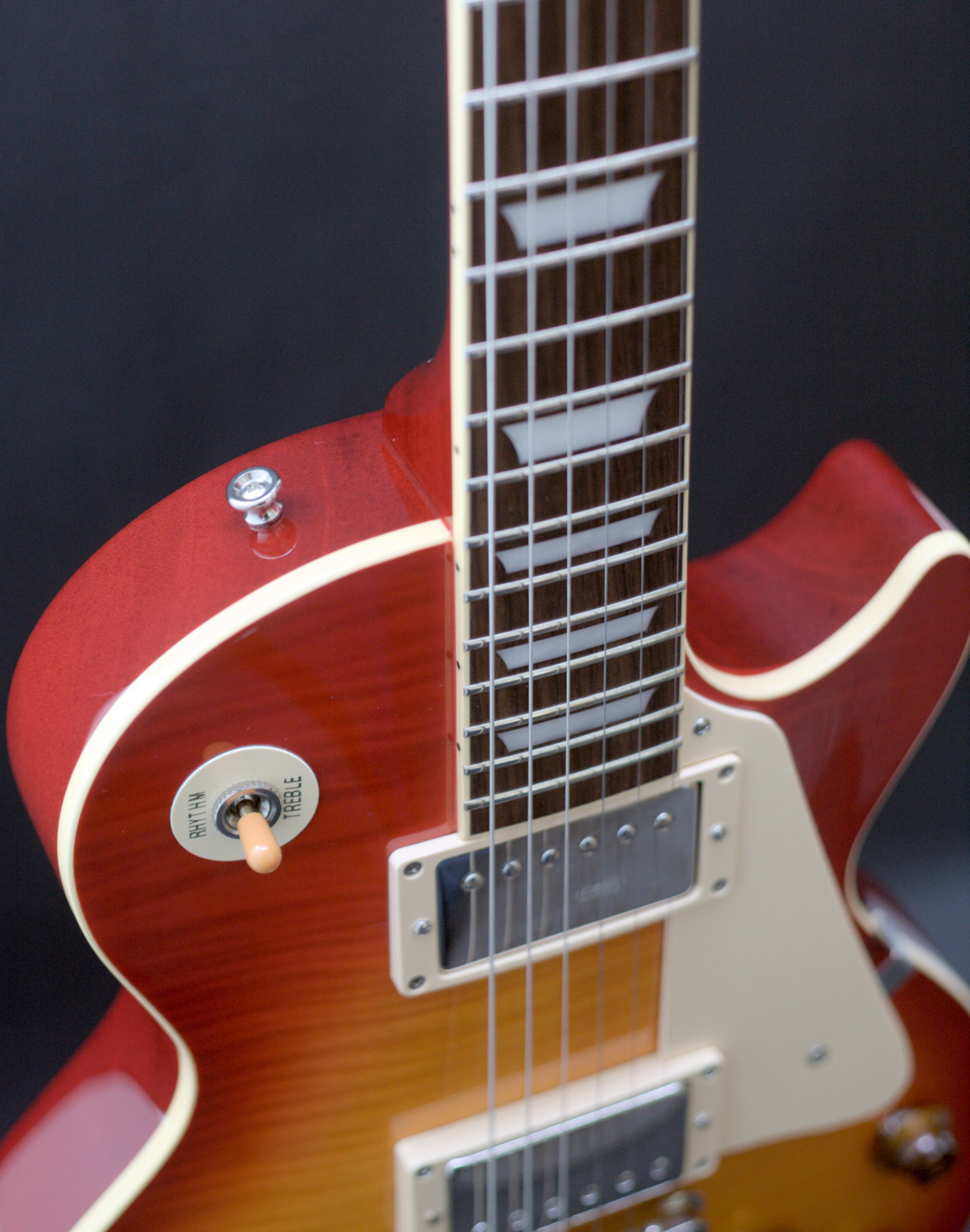 BODY: Two Piece Mahogany with Book-Matched Flamed Maple Veneer on Maple Cap