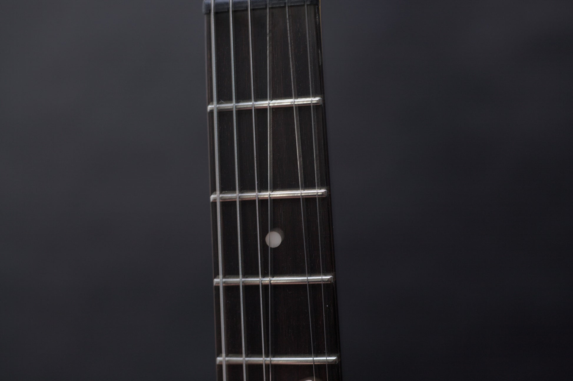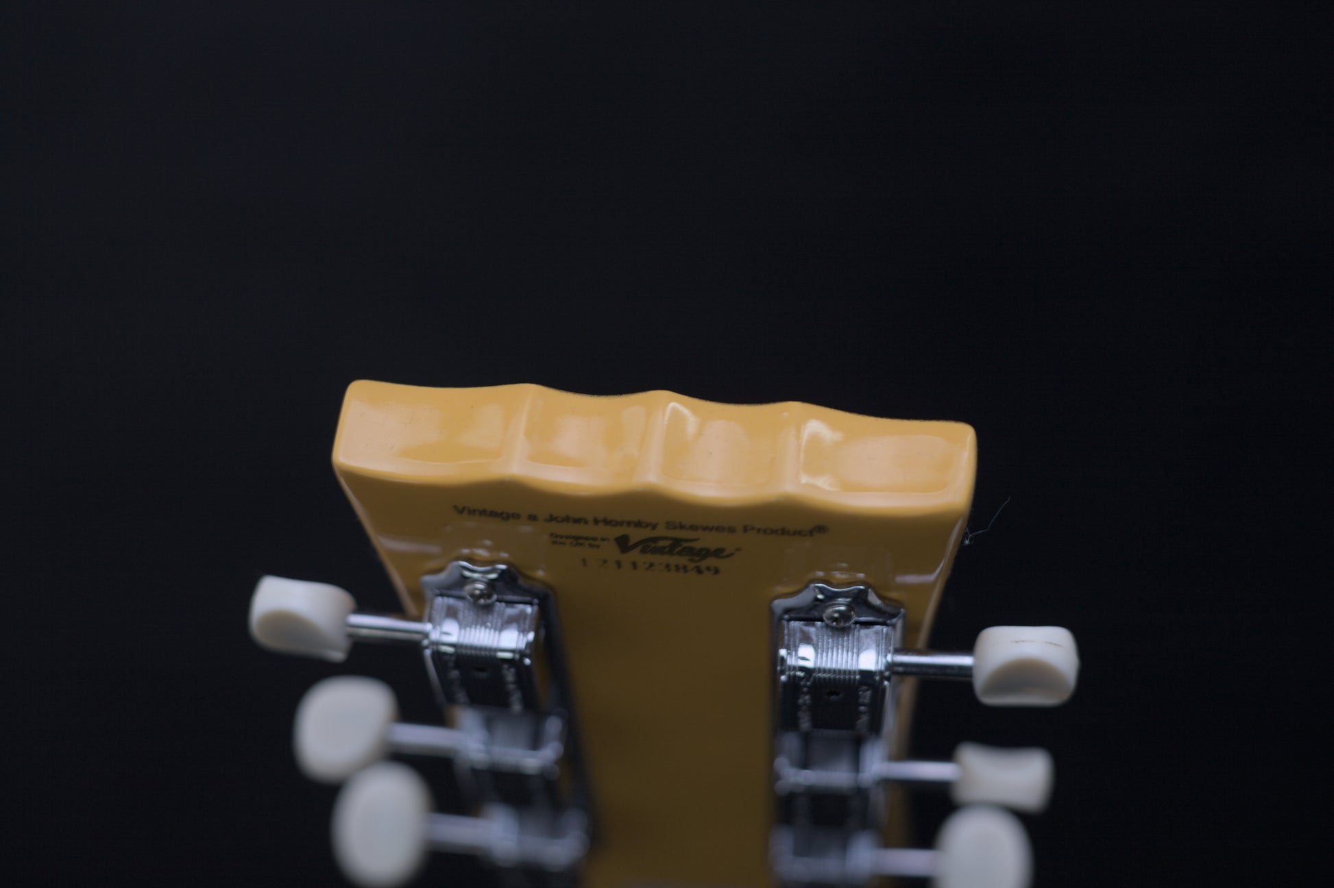 Mahogany body provides resonance, tone and ‘correct weight’ comfort. The Vintage V132 features a unique, evolutionary body shape, with a graceful descending bass side shoulder and an ingeniously-designed offset heel providing improved access to the upper reaches of the fretboard.